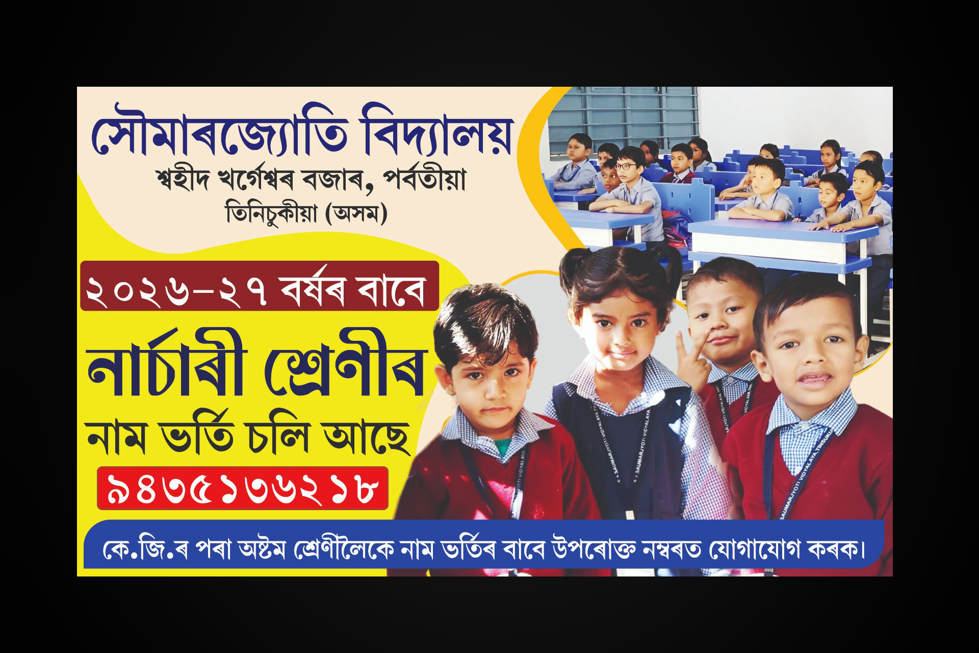 Saumarjyoti Vidyalaya is one of the leading senior secondary schools of Assam. From a rather humble beginning on 4 March, 1983, with just seven students in the Nursery Class and a few dedicated teachers led by its founder Headmistress Ms Mridula Sarma, the school has emerged as an important educational institution with more than 900 students (Nursery to CLass XII) . The main objective behind establishing this premier Assamese-medium school was to prove that it was possible to impart quality education through the medium of the mother tongue, and mould and nurture young minds. In Saumarjyoti Vidyalaya English has been ....